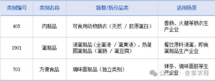 针对近年兴起的食品品类,目录新增或拆分细分项,避免企业 “无类可归”: