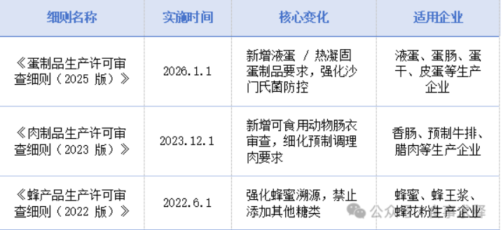 2026 年 1 月 1 日《蛋制品生产许可审查细则(2025 版)》将正式实施,涉及蛋制品的企业需提前调整生产布局;做地方特色食品的企业(如螺蛳粉、兰州牛肉面),务必先查属地细则,避免 “用错标准”。