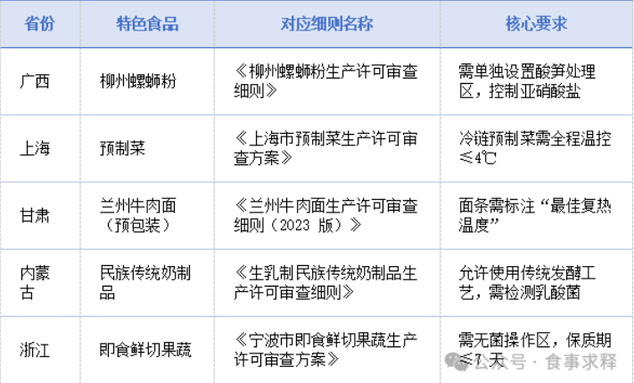 各省针对本地特色食品(如螺蛳粉、兰州牛肉面)制定专属细则,企业需按 “生产地” 匹配,举例如下: